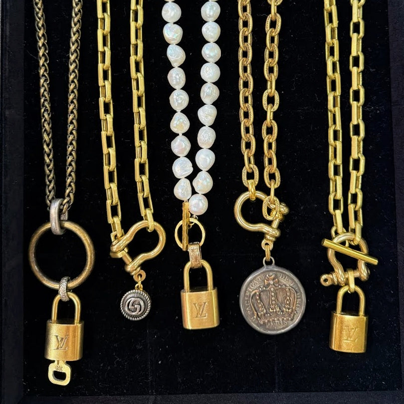 Elevate your everyday elegance with this sophisticated bronze necklace, anchored by an authentic LV lock that whispers luxury without demanding attention. Each piece is meticulously handcrafted to showcase the iconic lock's refined geometry against warm bronze tones, creating a timeless accessory that bridges heritage and contemporary style. Perfect for those who appreciate understated opulence and the artistry of fine jewelry, this necklace makes a quiet statement of refined taste.