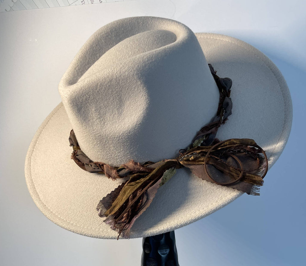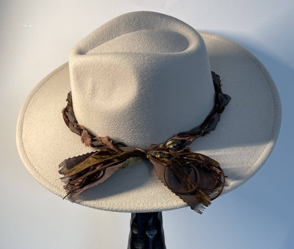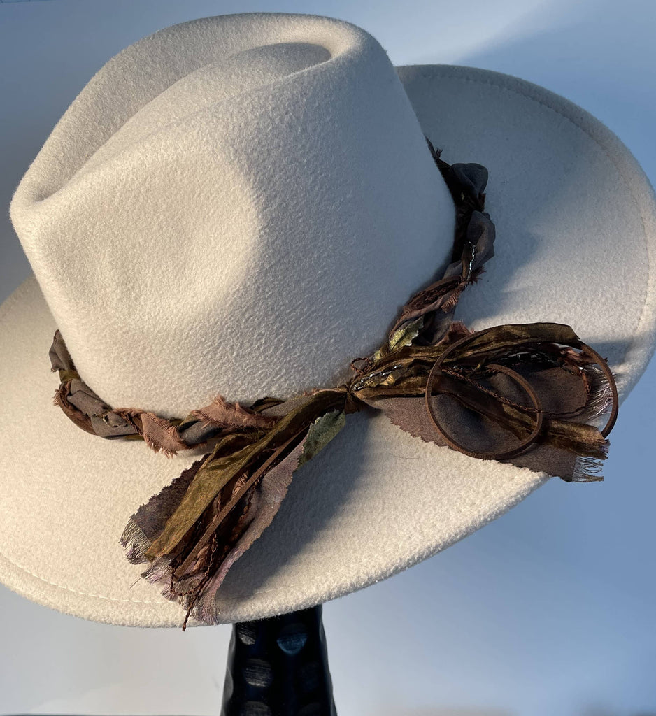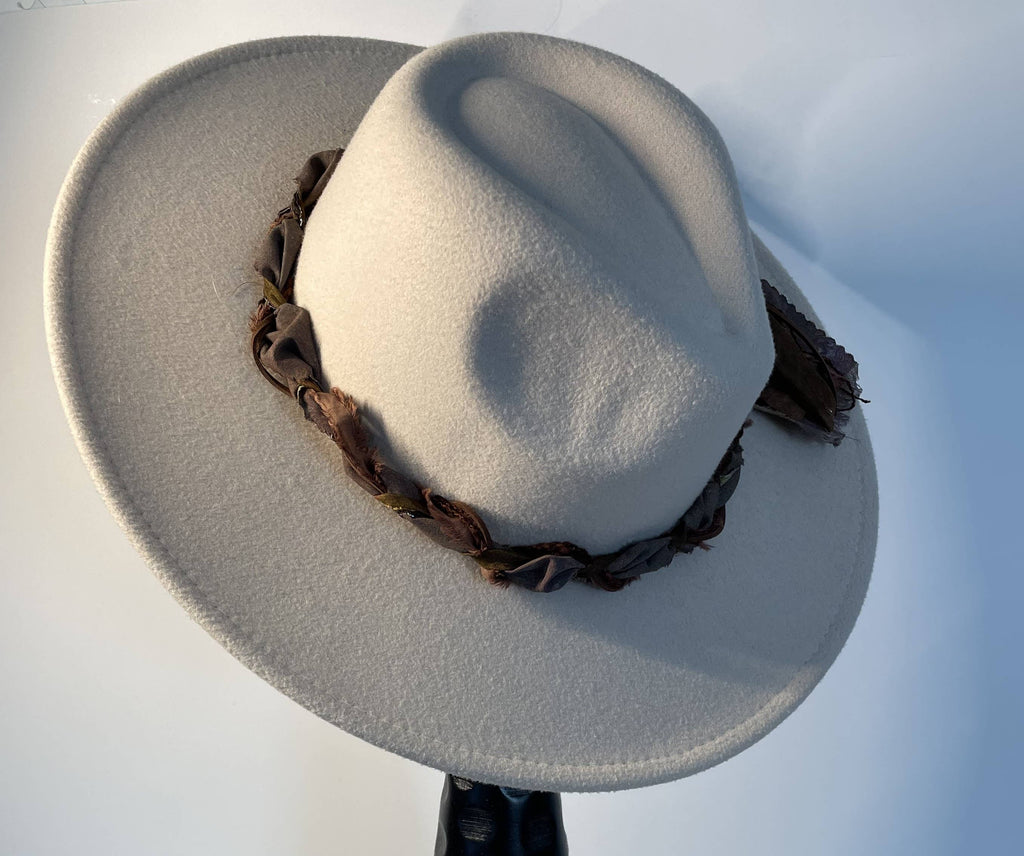 Transform your everyday hat into an artisan statement piece with this handcrafted Fat Braid band. Constructed from sumptuous hand-dyed sari silk, textured artisan fibers, and buttery suede cord, this pre-tied accessory delivers instant sophistication. The richly aged materials evoke a refined boho sensibility, effortlessly bridging casual and western-inspired wardrobes. Each piece is uniquely made to add distinctive character and elevated style to your collection.