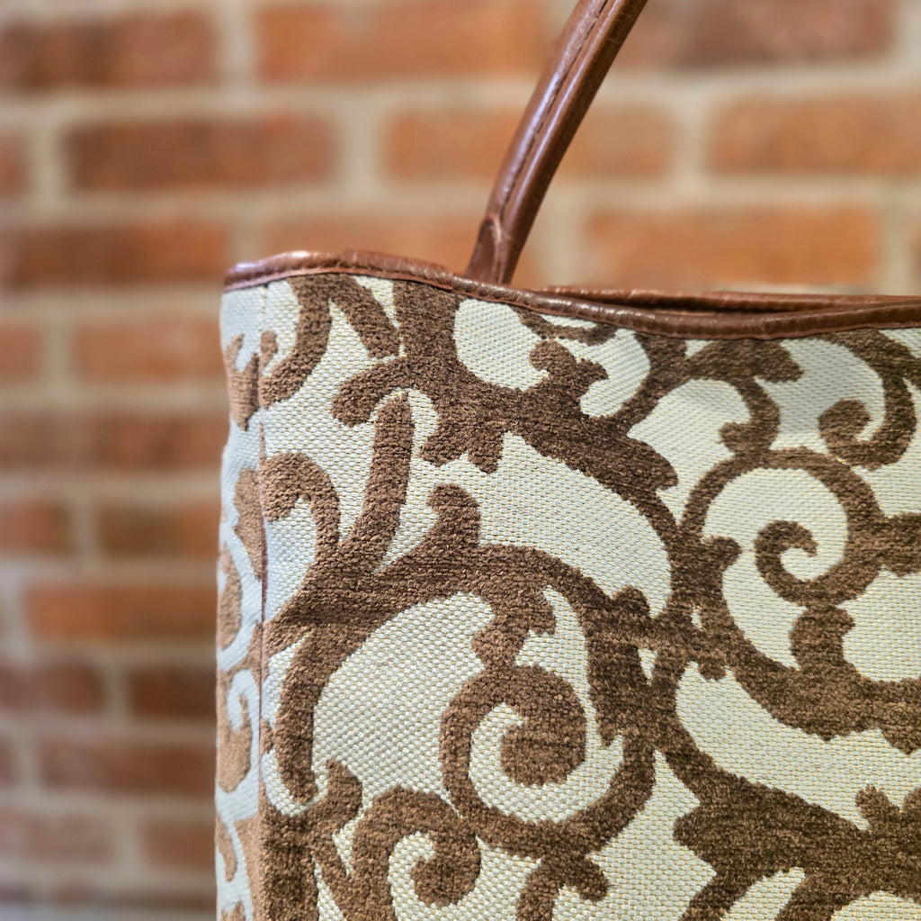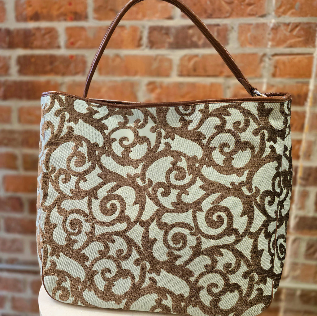 The Olivia Handbag in Chocolate Scroll is a refined luxury accessory designed for those who appreciate distinctive style. This curated piece elevates any wardrobe with its sophisticated presence, offering an understated yet commanding statement. Perfect for the discerning individual who values quality and timeless elegance.