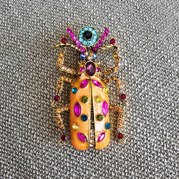 If you would have told me I would love a bejeweld Scarab Beetle Brooch, I would not have believed you. But this really is one of my faves! Make sure to check the specs below...it is a "large" brooch at 3 inches tall. A statement piece for sure!