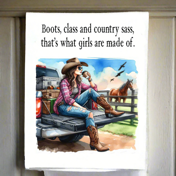 This sassy country girl-inspired kitchen towel is perfect for any girlfriend with ranch dreams. Add a touch of sass to your kitchen with this fun and quirky gift.