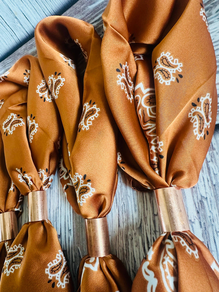 Saddle up in burnt orange pride with this eye-catching paisley wild rag—the perfect accessory for game day, rodeo season, or any time you want to rep your Longhorn spirit. Versatile enough to wear as a bandana, neck scarf, or headwrap, this vibrant piece ties together any western-inspired outfit with authentic flair. Whether you're cheering in the stands or hitting the arena, this outfit completer brings that burnt orange energy wherever you go.