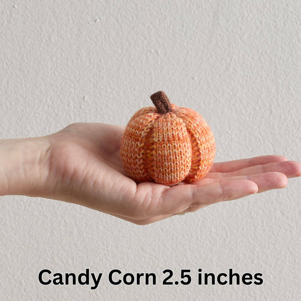Pumpkins are available in 2 sizes: 4 inches wide by 2.5 inches tall and 2.5 inches wide by 2 inches tall (including the stem).