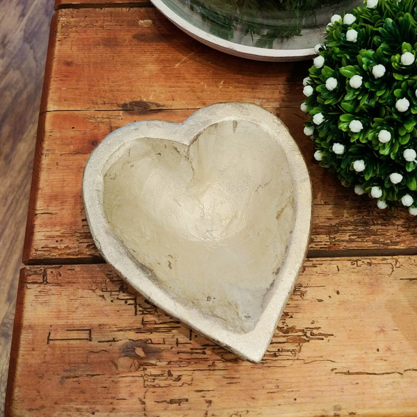 These rustic wooden dough bowls are hand hewed and made individually and no two will be exactly alike. This sweet wooden heart bowl will make a beautiful year-round accent piece in your home.