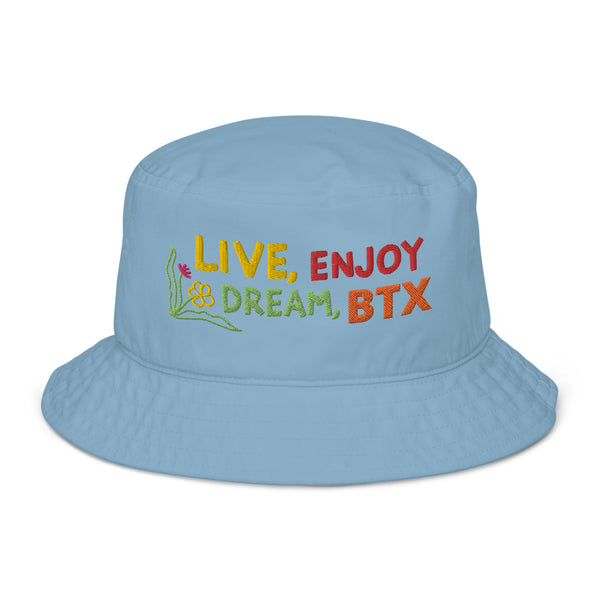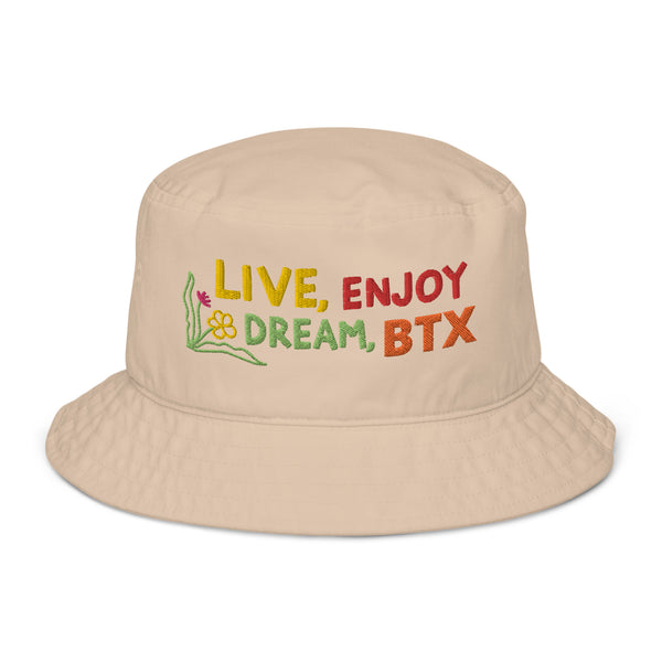 Make a stylish and eco-friendly choice with the organic Bellaire Dream BTX bucket hat! This 100% cotton twill hat has the potential to become a favorite in your wardrobe thanks to its breathable material and clean look.