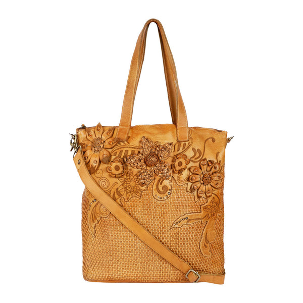 Carry a masterpiece with the Fontana Shopper Tote. The sculpted flower patterns are a work of art, elevating your style to new heights. Choose between the elegant top shoulder handle or the versatile crossbody carry for added convenience. Revel in the luxurious experience this tote provides.