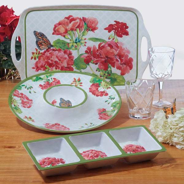 Serve up some floral charm with our Geraniums and Butterfly Oval Platter. This oval serving platter is perfect for spring kitchen decor. Add a touch of elegance to your table with this geranium platter.