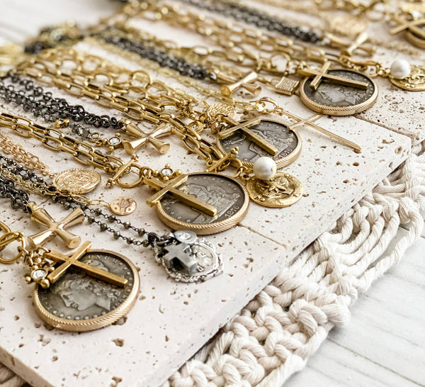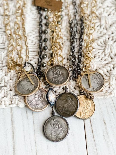 Our newest and most engaging necklace, The Relic, has become a new fan favorite. Made with replica coin pendants, the necklaces are sure to be standouts.