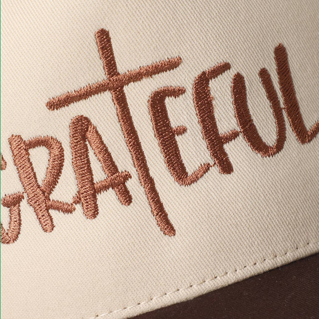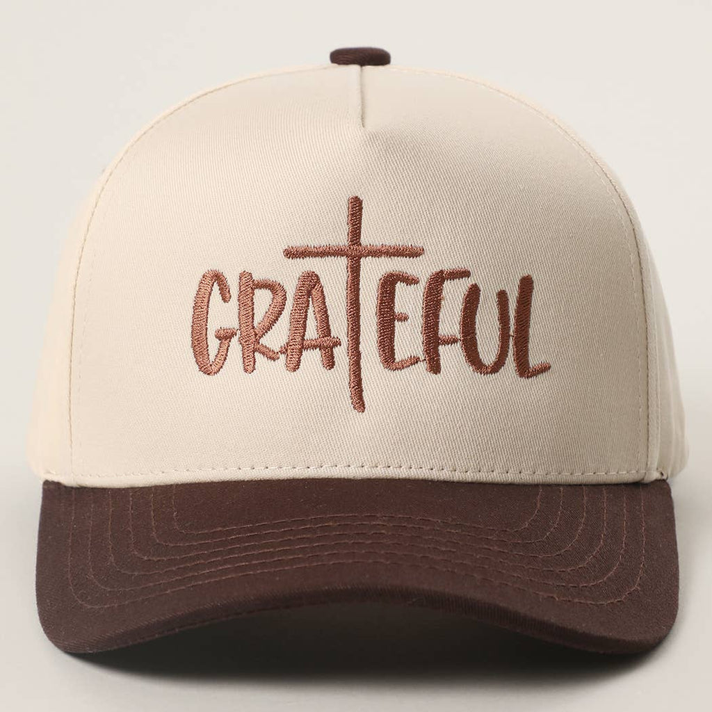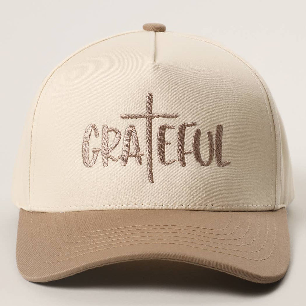This classic cap celebrates gratitude with embroidered "GRATEFUL" text and a charming cross design. Perfect for expressing your thankful spirit in style, whether you're heading out for the day or showing off your positive vibes wherever you go.