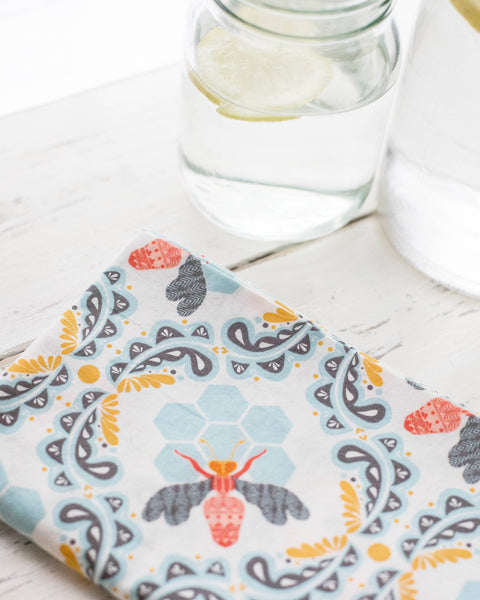 Liven up your meals and help the environment with our Honey Bee Cloth Napkins Set of 4. Made with the planet in mind, these everyday napkins feature a playful bee design. Say goodbye to wasteful paper napkins and hello to stylish sustainability.
