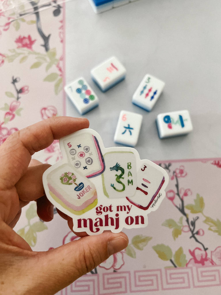 Declare your mahjong obsession with this vibrant vinyl sticker! Adorned with hand-painted watercolor tiles and cheeky lettering, it's the perfect way to personalize your water bottle, laptop, or notebook. Built tough with waterproof and scratch-resistant materials, this sticker brings color and character to any surface while standing up to daily wear and tear.