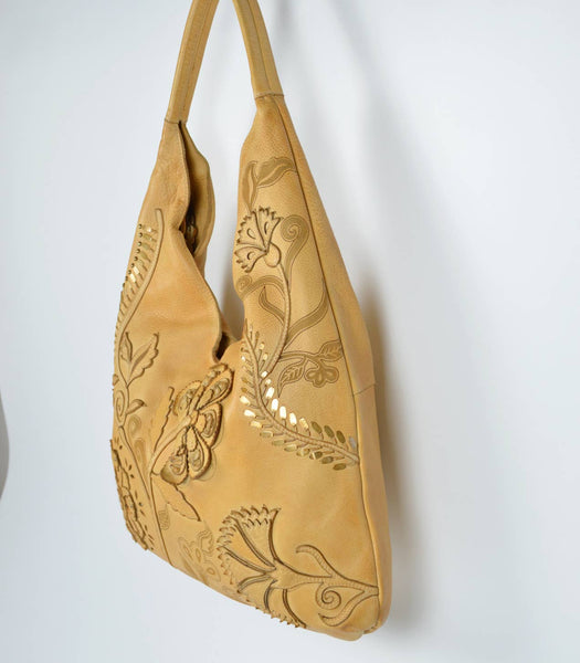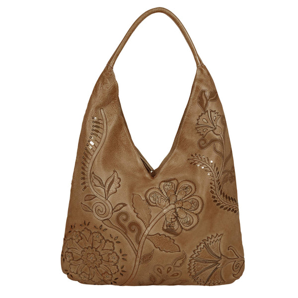 Experience true luxury with Milani Hobo. Adorned with delicate floral applique and intricate stud detailing, every piece is handcrafted from the finest genuine leather. Elevate your style with this exclusive bag, designed for those who appreciate the finer things in life.