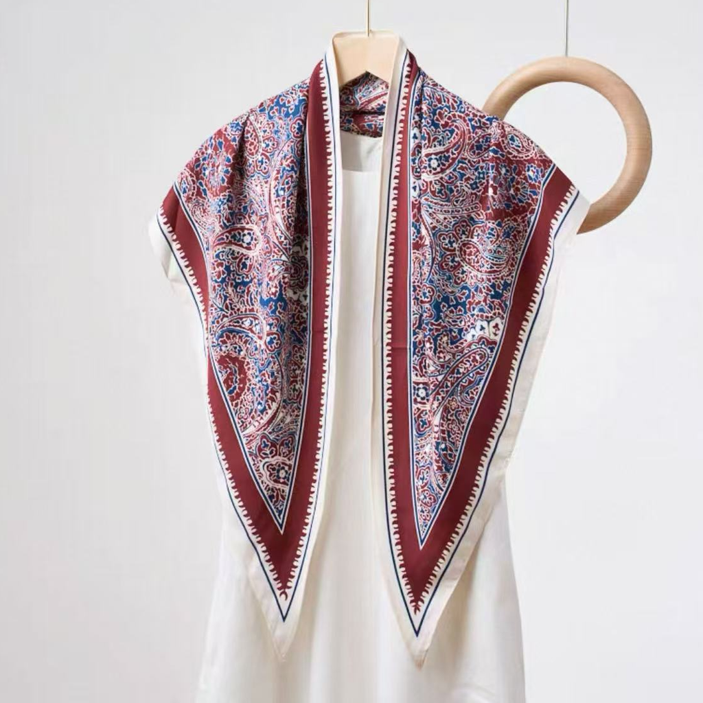 Elevate your accessory collection with this versatile triangle scarf, where refined paisley detailing meets contemporary design. The lightweight fabric drapes beautifully whether styled around the neck, secured as a headscarf, or casually layered across the shoulders. Its timeless pattern seamlessly transitions from everyday wear to special occasions, offering understated sophistication that complements any wardrobe with graceful ease.