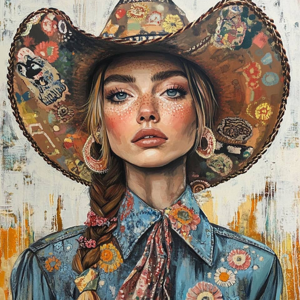 Elevate your space with our Patches Cowgirl Wall Art Print. This modern take on a cowgirl is perfect for adding a touch of upscale western charm to your office or home decor. With the ranch artwork featured, this piece is a must-have for any true cowgirl or fan of western decor. Order now and bring some modern country flair into your space.