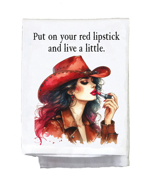Unleash your sassy side with this kitchen towel perfect for any country girl. Don't let ranch dreams just be dreams - put on your red lipstick and tackle the day! Makes a great gift for your girlfriend. (Yee-haw!)