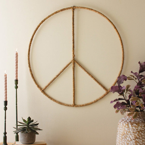 Add a touch of bohemian charm to your walls with our Seagrass Peace Sign. Handcrafted from seagrass and iron, this wall hanging brings a sense of peace and tranquility to any room. (No need to travel to Bali for this one, but we won't stop you!)
