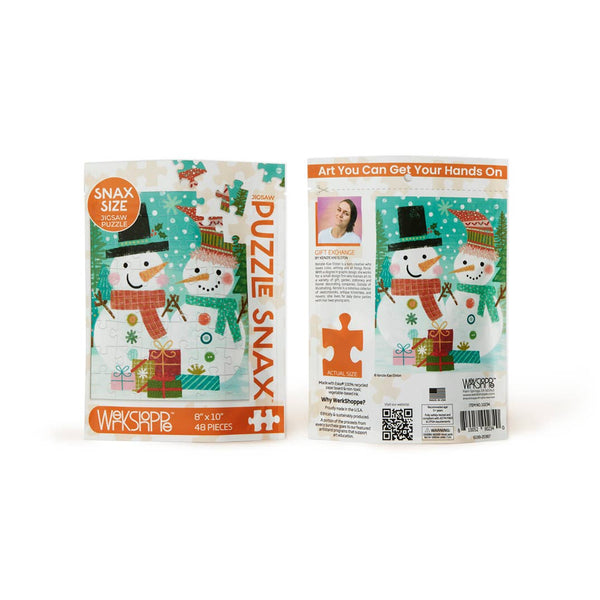 Say goodbye to those same old, same old holiday gift ideas, and hello to the Snowmen Gift Exchange Puzzle Snax! This 48-piece jigsaw puzzle is perfect for the holiday season. Stuff it in a stocking or make it part of your extra special gift - these sweet snowmen are sure to give your present that extra touch of cheer!