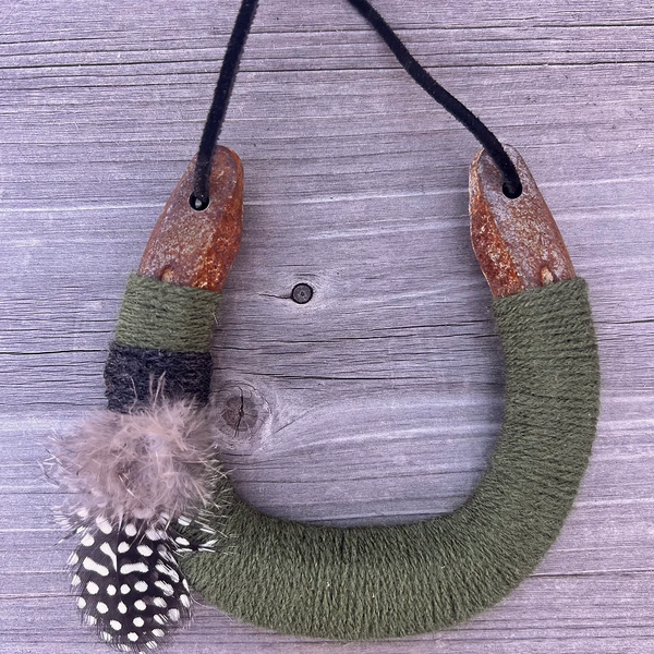 Upcycled horseshoes wrapped in yarn make a beautifully unique and personalized gift, blending rustic charm with a touch of creativity. By taking old, worn horseshoes found on ranches out west and wrapping them in vibrant yarn, creating a one-of-a-kind keepsake that carries both history and handmade artistry. Give the gift of good luck, perfect for housewarming gifts, weddings, or any occasions. Each piece becomes a work of art, full of character and a connection to Western traditions, while offering a fresh, modern twist.
