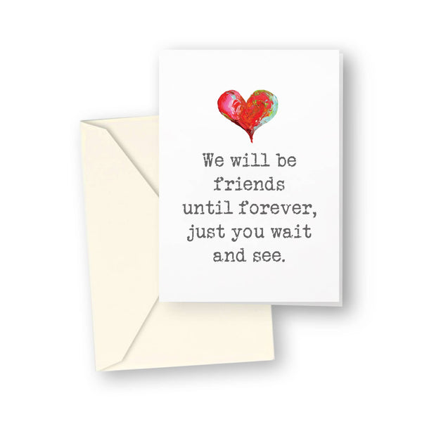 Our We Will Be Friends Enclosure Cards elevate any gift with a refined touch of elegance. This pack of four cards is printed on premium card stock, ensuring a luxurious feel and durability. Each card showcases exquisite hand-painted designs by a distinguished American artist, embodying artistry and sophistication. Ideal for accompanying heartfelt messages, these cards add meaningful charm and a personal connection to your gifts, making every occasion more memorable. Their classic design complements a variety of styles, enhancing your gift’s presentation with understated grace.